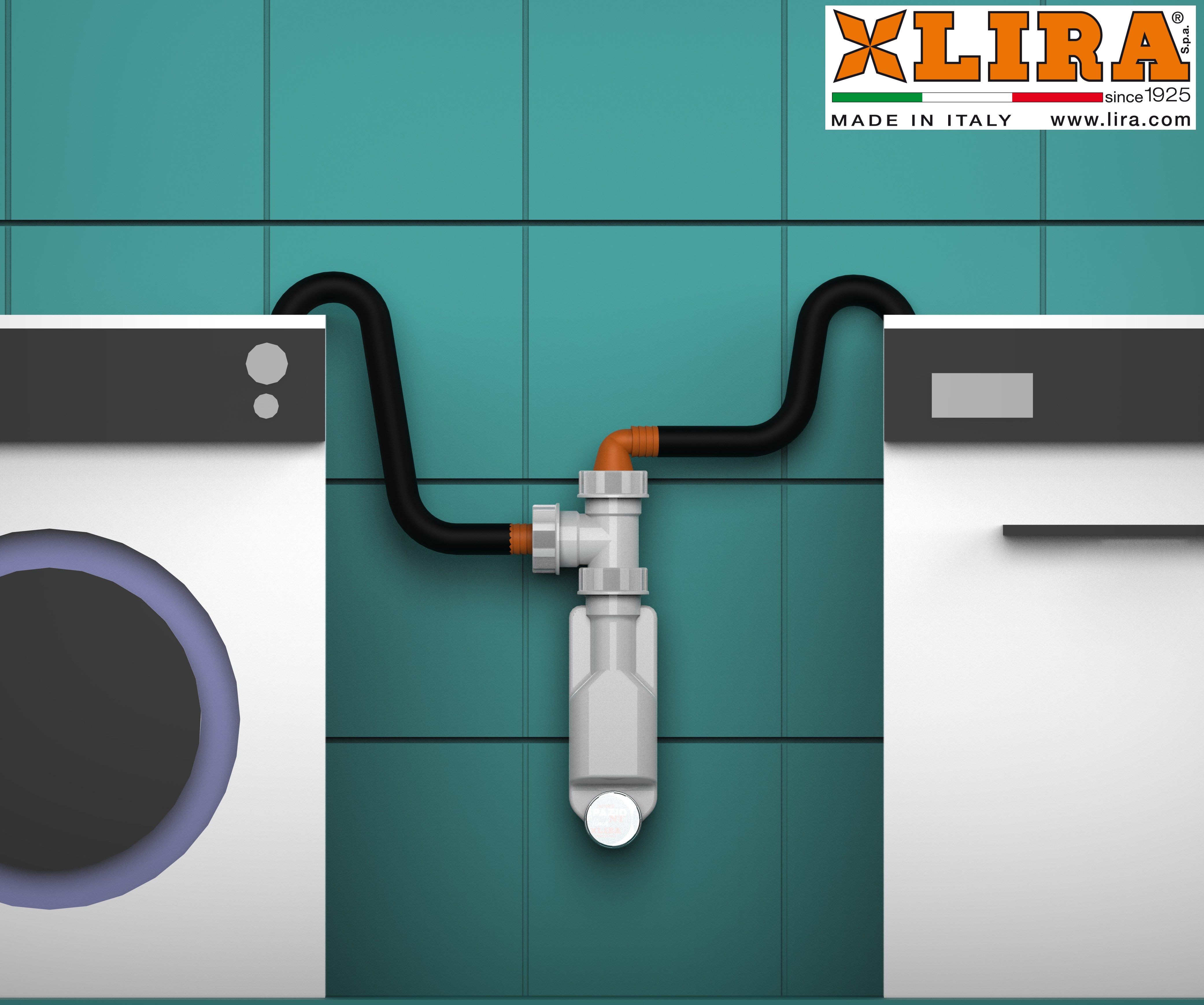 | Configuration avec TEE 002461 (INCLUS) avec connecteur Ø20-25 pour machines à laver et lave-vaisselles |